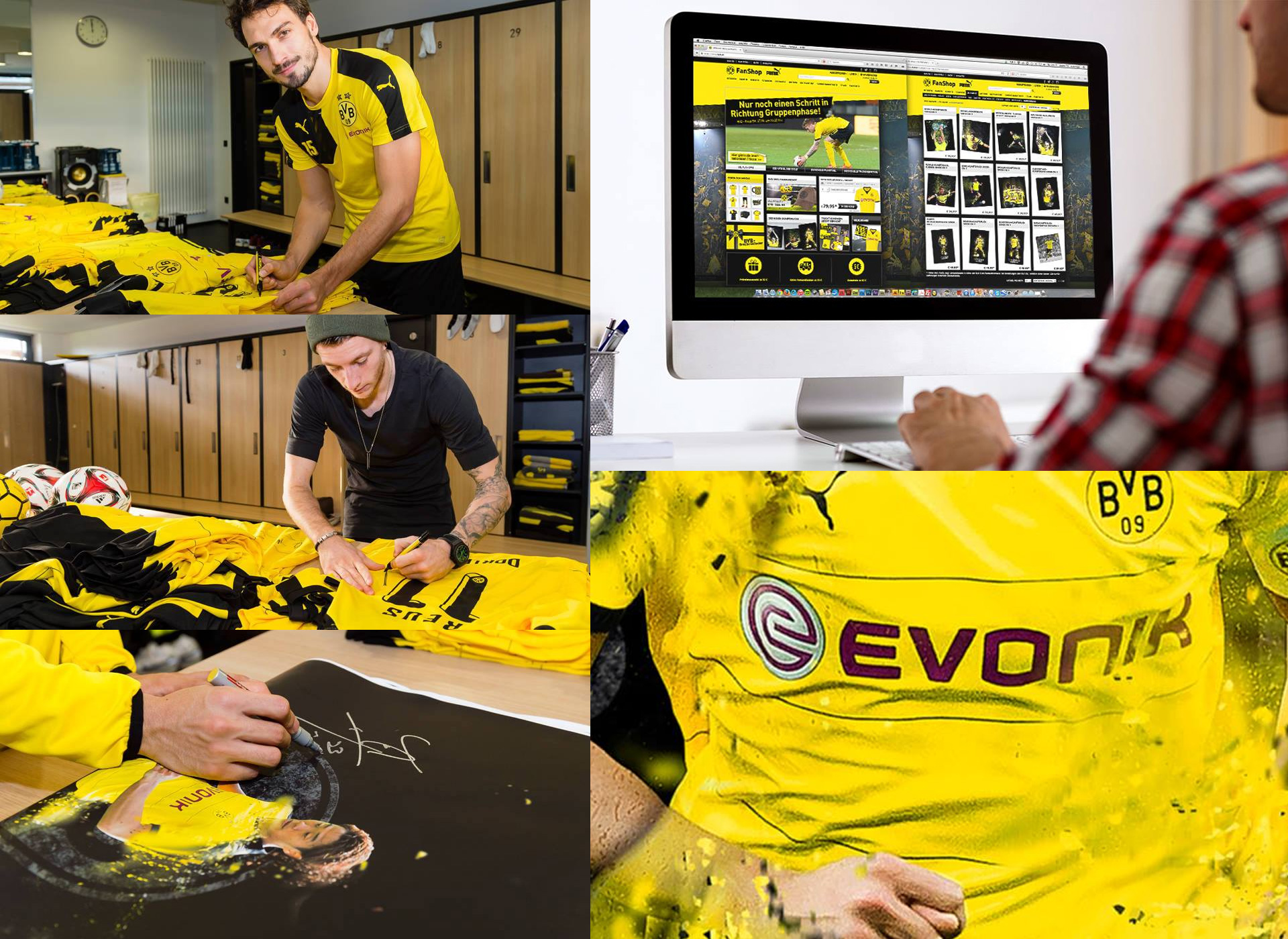 Für Borussia Dortmund wurde die Konzeption, Kreation und Umsetzung diverser Printprojekte für den Online-Shop & die Deutschland-Stores des BVB übernommen. So durfte ich unter anderem in der Serie IKONEN inspirierende und unvergessliche Momente der Vereinsgeschichte festhalten, etwa den historischen und ersten Europapokalsieg einer deutschen Fußballmannschaft aus dem Jahre 1966 oder den legendären Triumph in der Champions League von 1997.