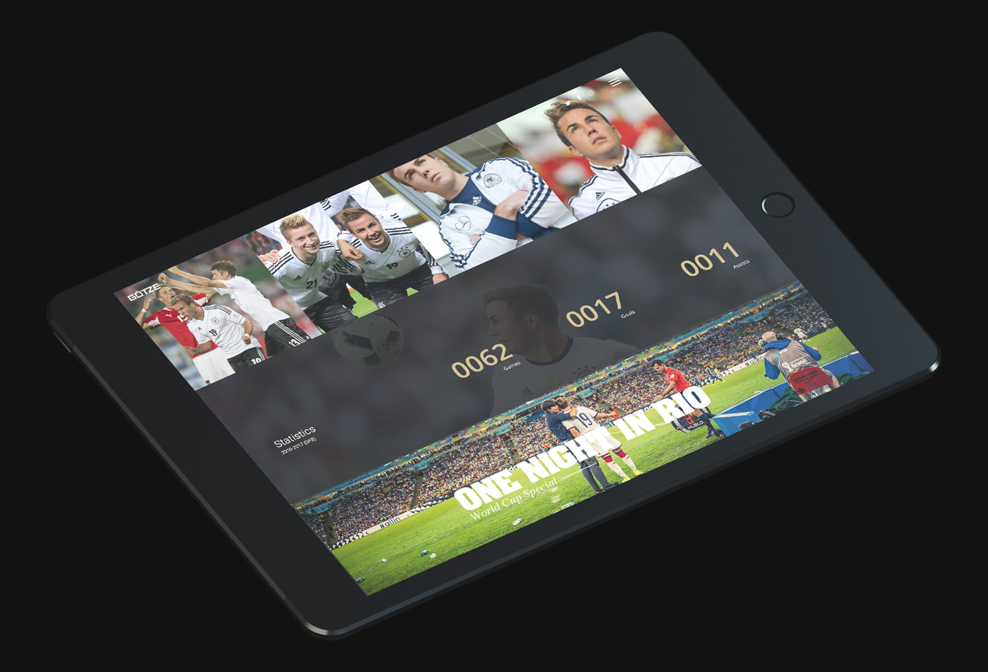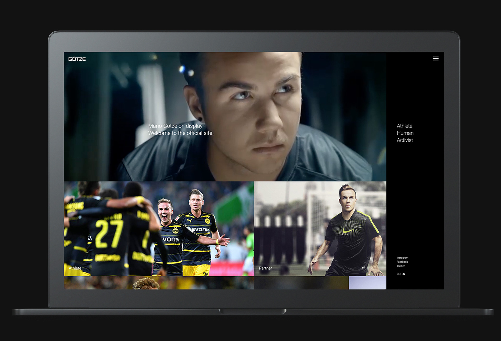 Mario Götze ist seit 2009 Profifußballer. Das Highlight seiner bisherigen Karriere war der Siegtreffer im Finale der Fußball-Weltmeisterschaft 2014 gegen Argentinien. Für Mario Götze wurde die Konzeption, Kreation und Umsetzung diverser digitaler Projekte übernommen.