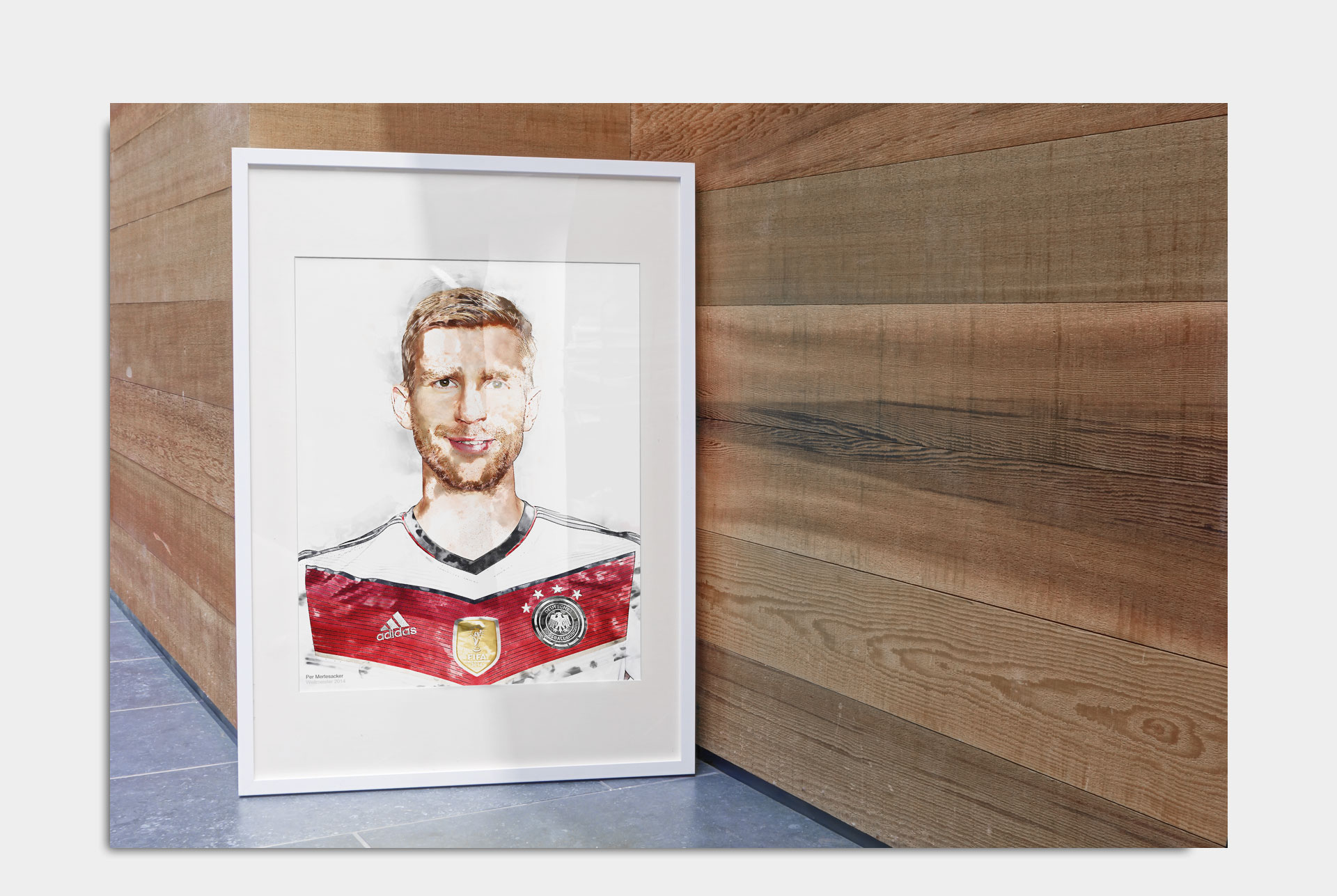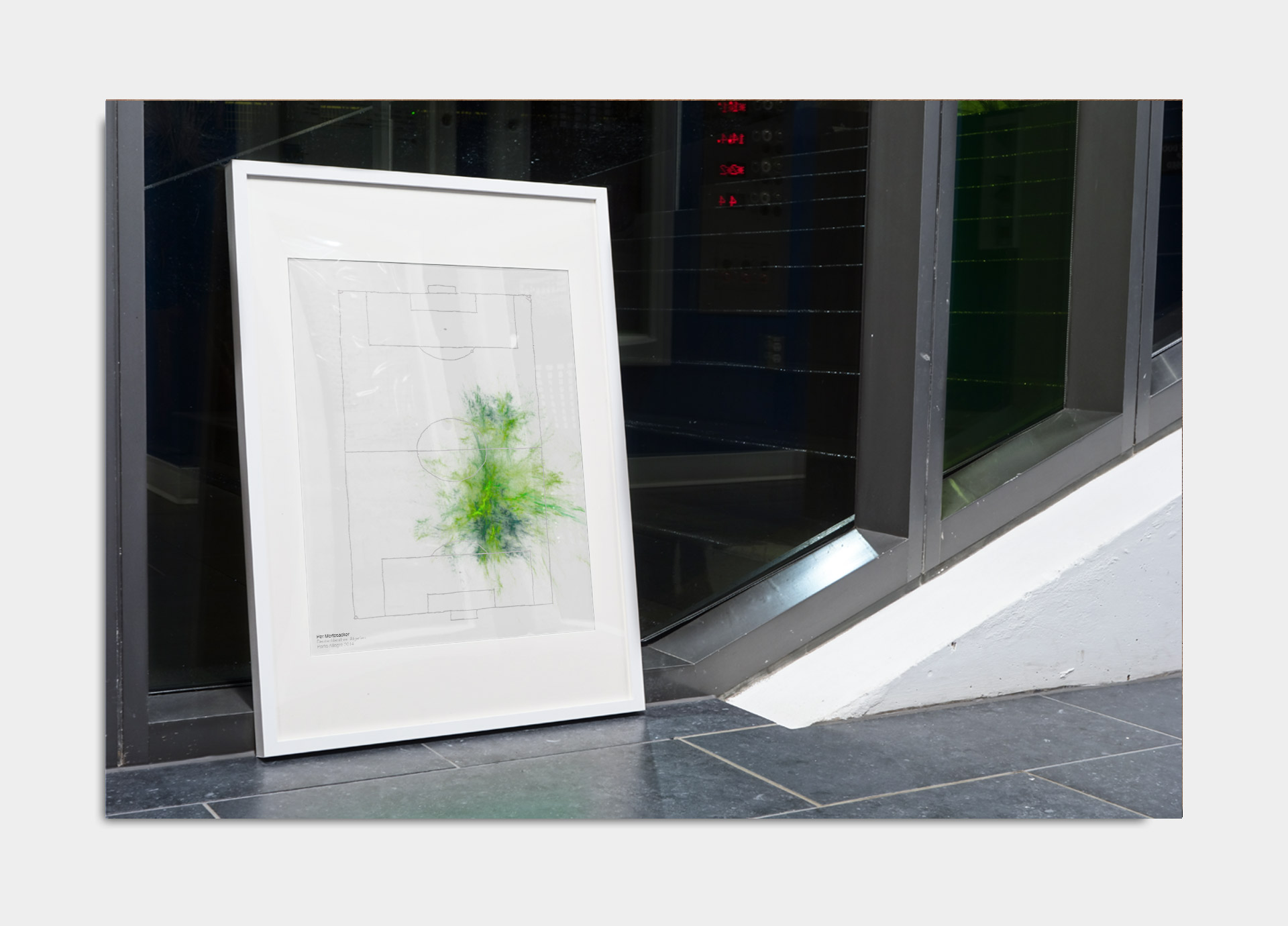Limitiertes Portrait und stilisierte Heatmap mit Bewegungsdaten von Per Mertesacker aus dem WM-Achtelfinalspiel gegen Algerien am 30. Juni 2014 in Porto Alegre, Brasilien. Umgesetzt für die Per Mertesacker Stiftung als Kunstedition zum Gewinn der Fußballweltmeisterschaft 2014.